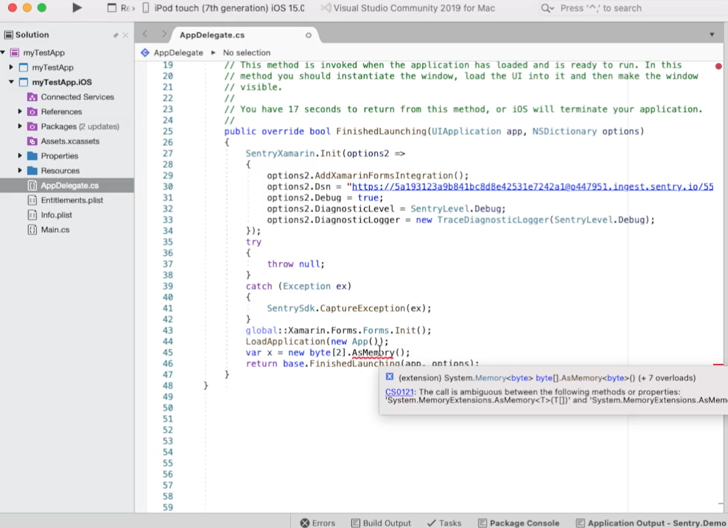 You will notice a conflict of Assemblies in regard to AsMemory extension, the same is happening with the Sentry SDK but only reveals the issue in runtime.